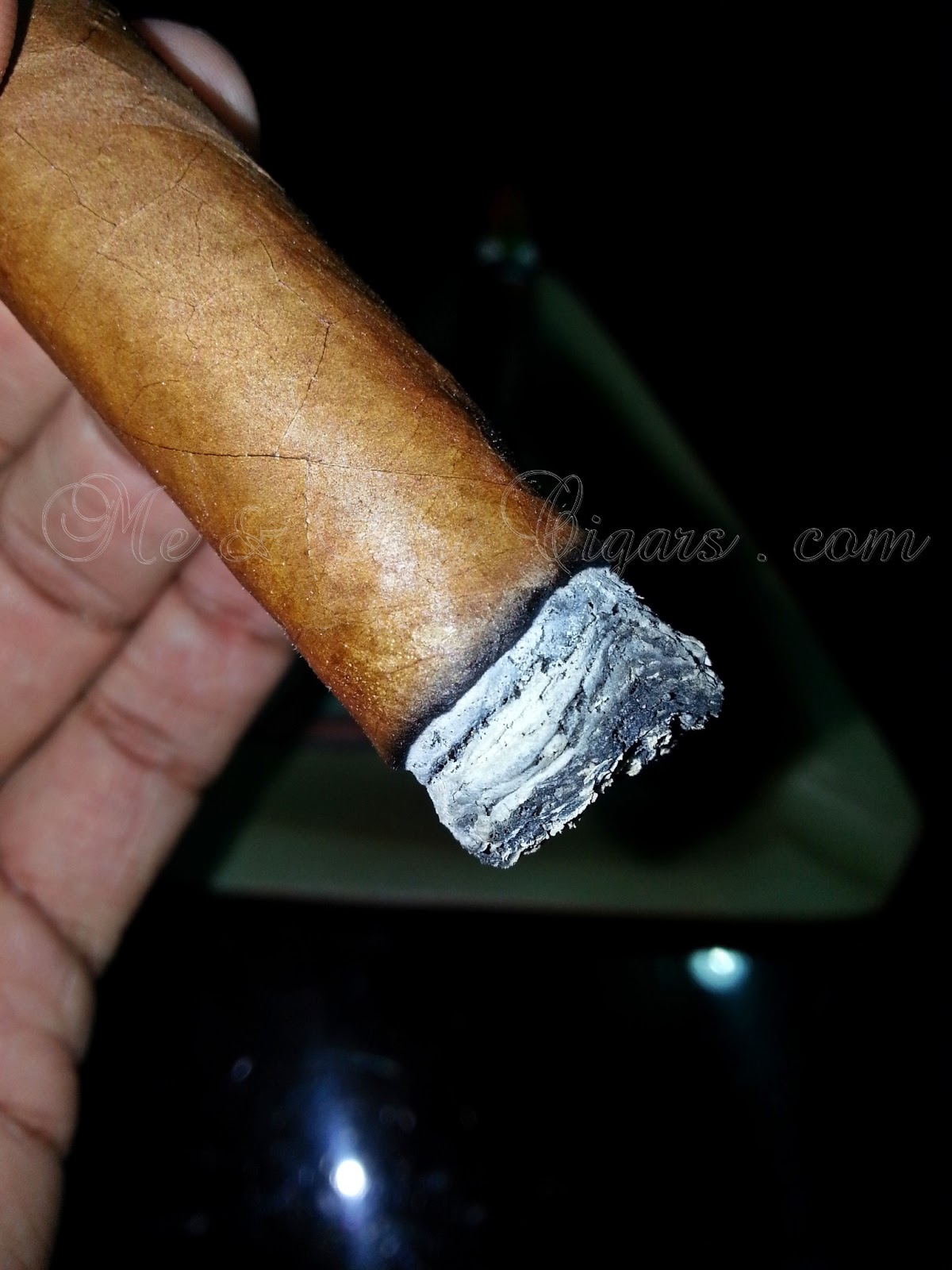 The Middle Burn - Tapados - The ammonia taste gradually clears out but some mellow spice sticks around in the throat. The earthy and woody notes are highlighted in the middle burn but not much development in flavors except for some tea taste on the tongue. The burn is even and steady, draw is perfect and smoke is abundant. Mañanitas - Although we find difficulty with this cigars construction, we had to re-light it up a few times, same flavor profiles as the Topados but an uneven burn with light smoke. Both ash on cigar are light and barely holds on.